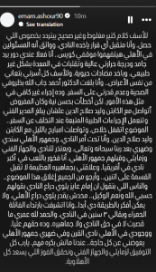 موضحا أن غيابه جاء بسبب تعرضه لوعكة صحية شملت نزلة برد وارتفاعا في درجة الحرارة واضطرابات في المعدة، وهي أعراض أصابت أفراد أسرته أيضا. وأكد اللاعب أنه أبلغ طبيب الفريق بعدم قدرته على السفر، لكنه أقر بخطأه في عدم التواصل مباشرة مع مدير الكرة لإبلاغ الجهاز الفني واتباع الإجراءات الطبية المعتمدة